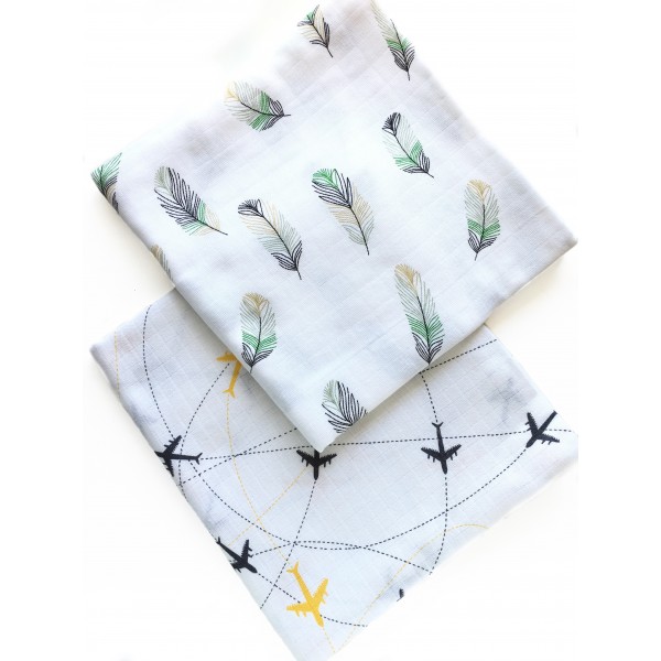 Müslin Örtü Çok Amaçlı Battaniye %100 Cotton-Pamuk Oeko-Tex Certified Müslin Bez 2’lü 110x110 Tüy-Uçak