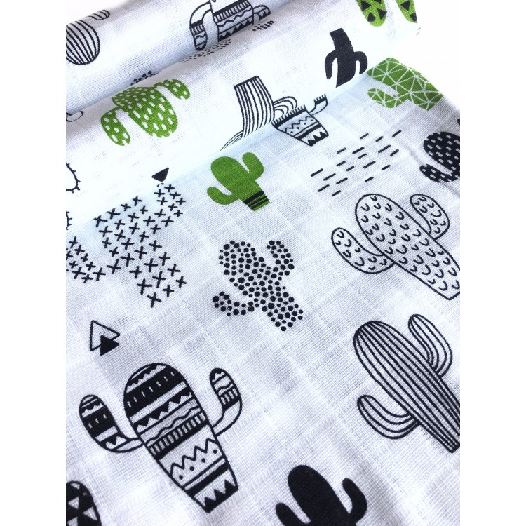Müslin Örtü Çok Amaçlı Battaniye %100 Cotton-Pamuk Oeko-Tex Certified Müslin Bez 110x110 Kaktüs