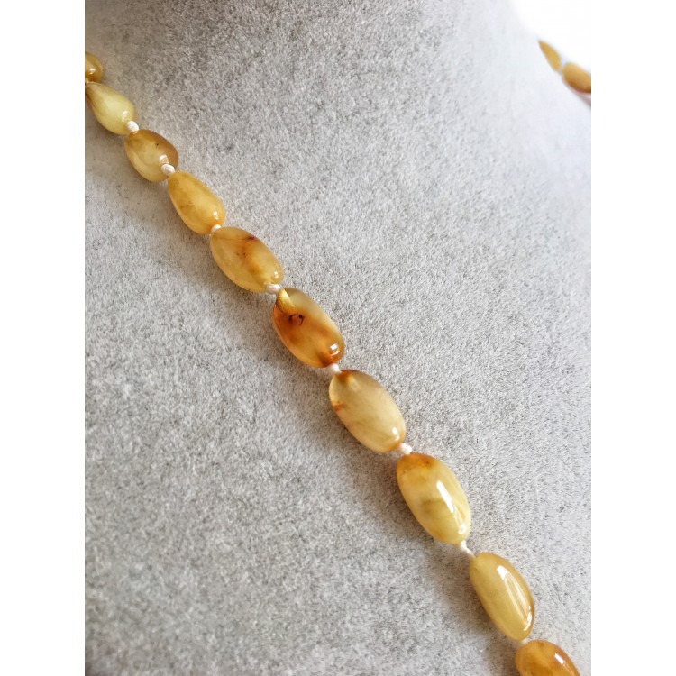 İpek Kehribar Bal Renk Küçük Taneli Sertifikalı Baltık Damla Kehribar Yetişkin Kolye ipek-219