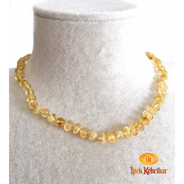 İpek Kehribar Bal Renk Parlak Barok Kesim Sertifikalı Baltık Kehribar Bebek Kolye Kehribar Kolye ipek-157