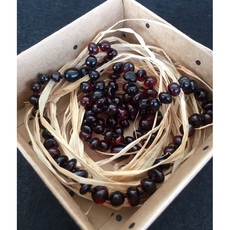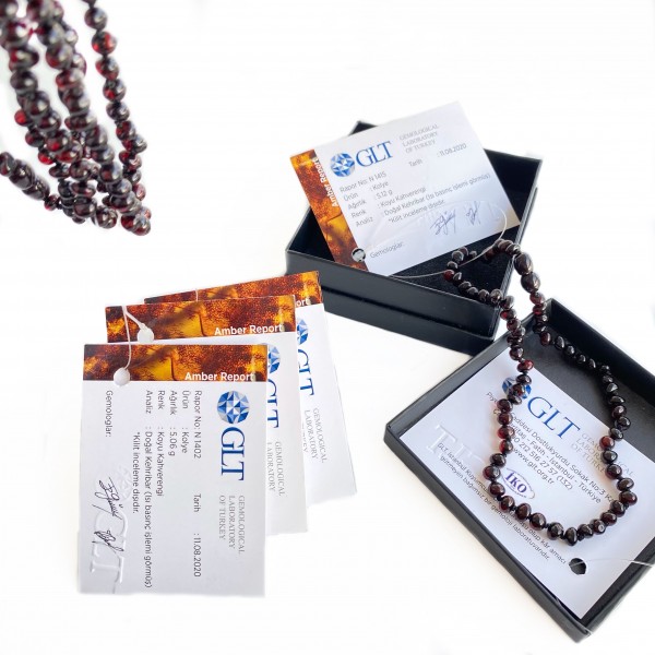 ipek kehribar Koyu Kahverengi Visne Renk GLT Sertifikali Baltik Damla Kehribar Bebek Kolye ipek-512