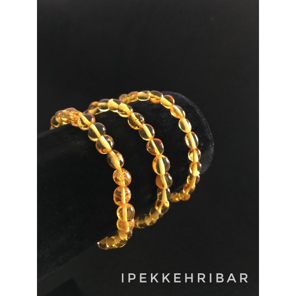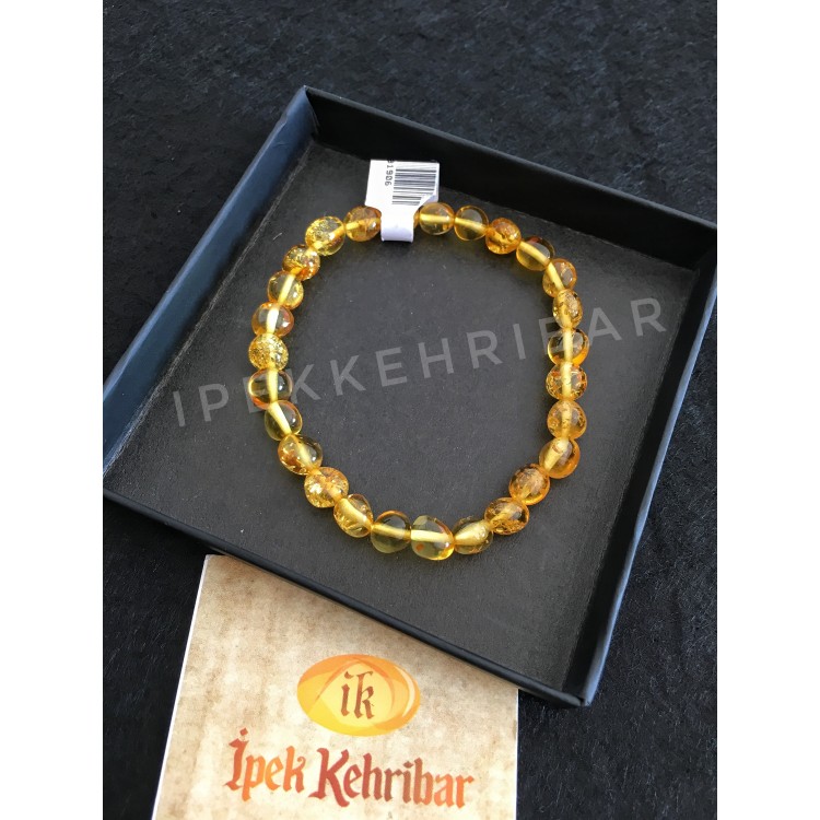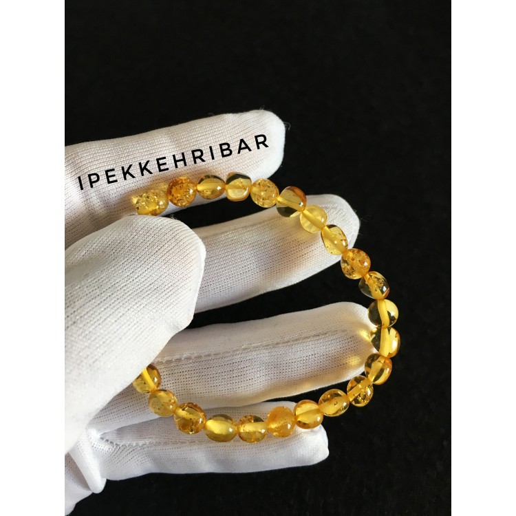 İpek Kehribar Litvanya Sertifikalı Limon Renk Baltık Damla Kehribar Kadın Erkek Bileklik ipek-338