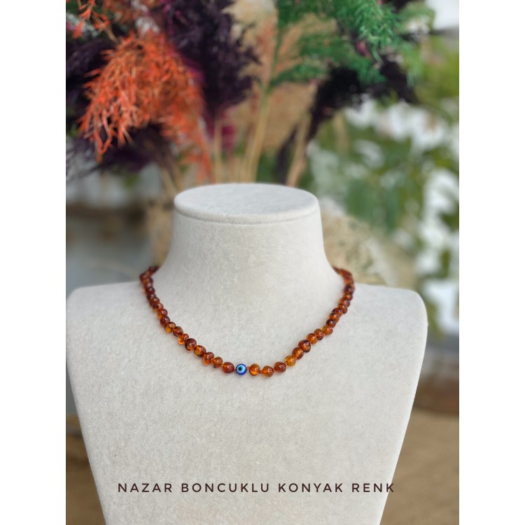Malzeme : Baltık Kehribar–Baltic Amber (Ortasında bulunan Nazar Boncuğu detayı kehribar değildir; görsel zenginlik katması için dekoratif amaçlı eklenmiştir.)