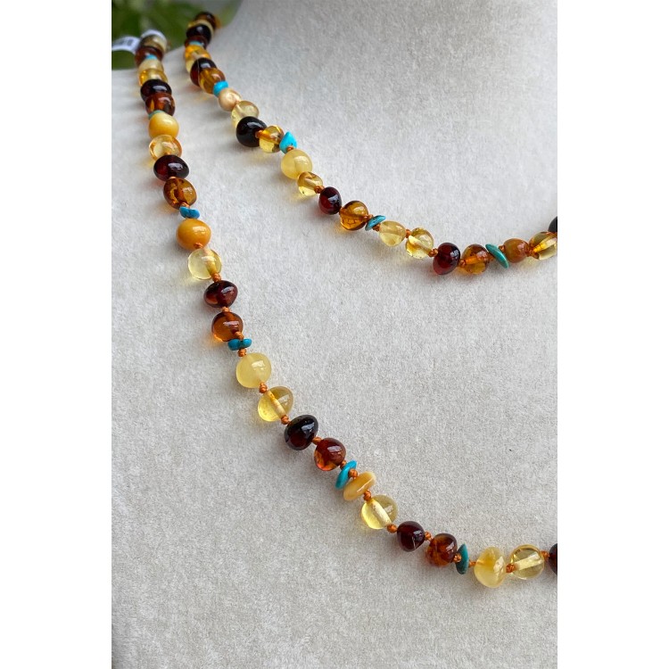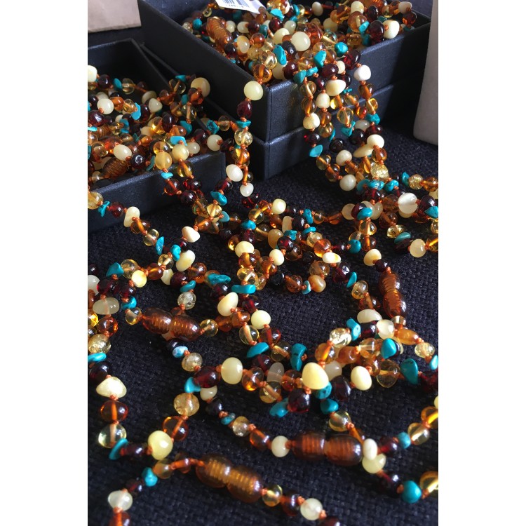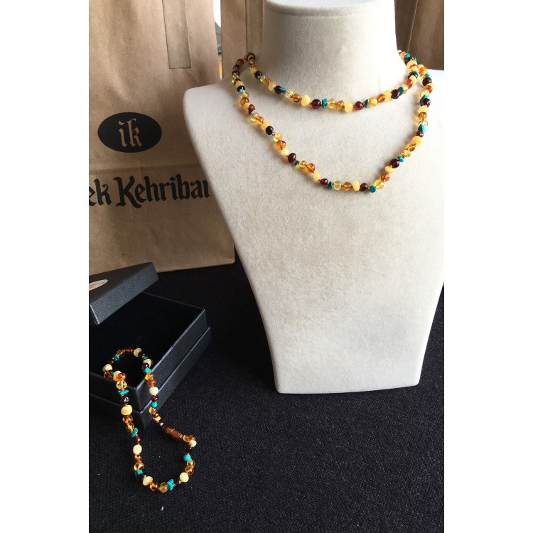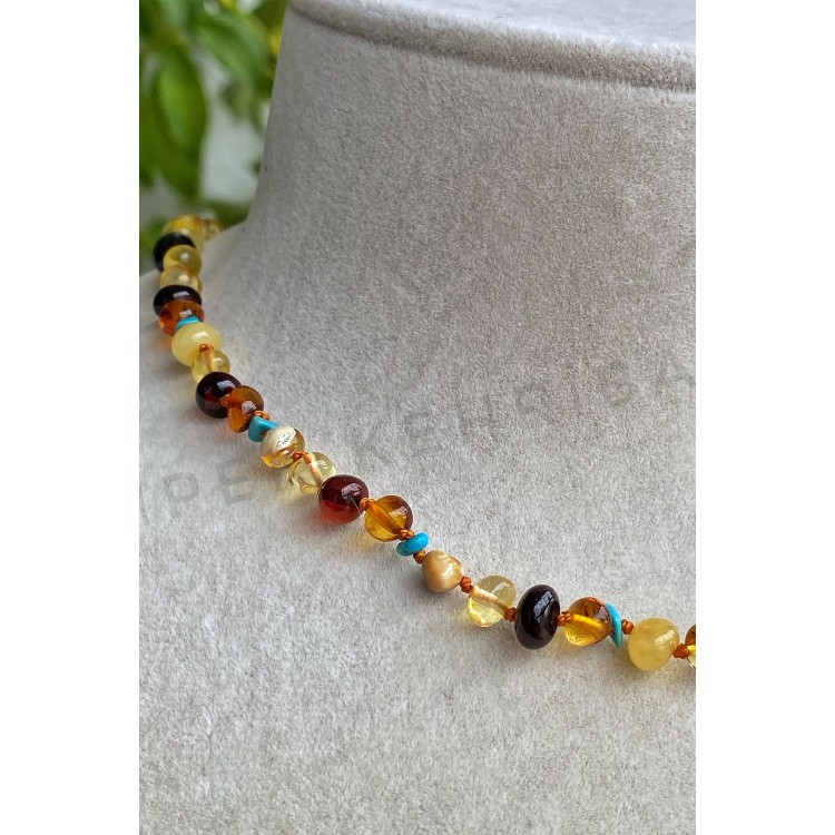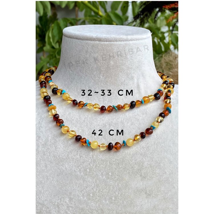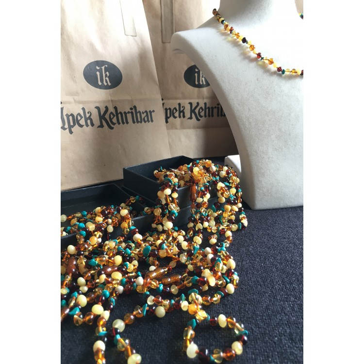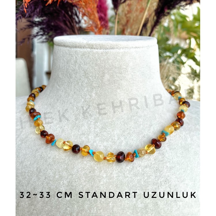 Malzeme : Baltık Kehribar – Baltic Amber (Not: Aralarda yer alan turkuaz renkli detay gerçek taş değildir, kehribar da değildir; yalnızca görsel zenginlik katması için dekoratif amaçlı eklenmiştir.)