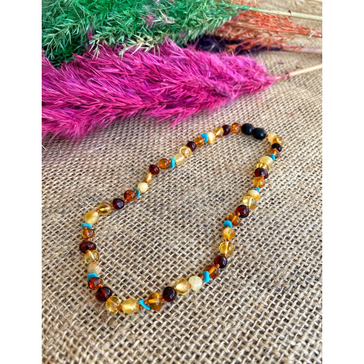Sertifikalı Baltık Damla Kehribar – Bebek & Çocuk Kolyesi (Turkuaz Detay, ipek-503)