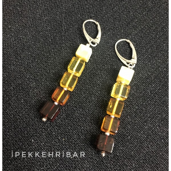 Gümüş İşçilik Küp Kesim Damla Kehribar Küpe |