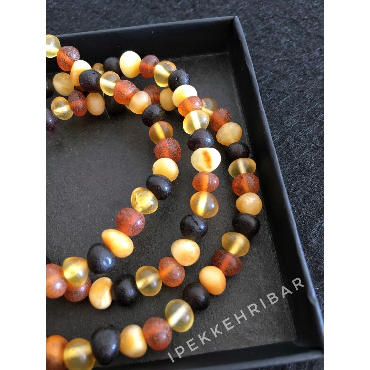İpek Kehribar Mat Cilasiz Litvanya Sertifikali Baltik Damla Kehribar Kadin Erkek Bileklik ipek-447