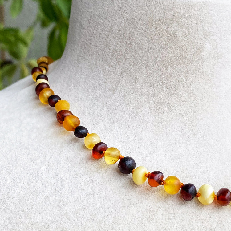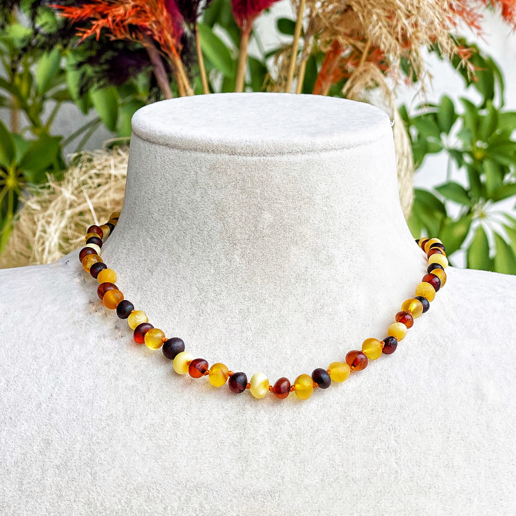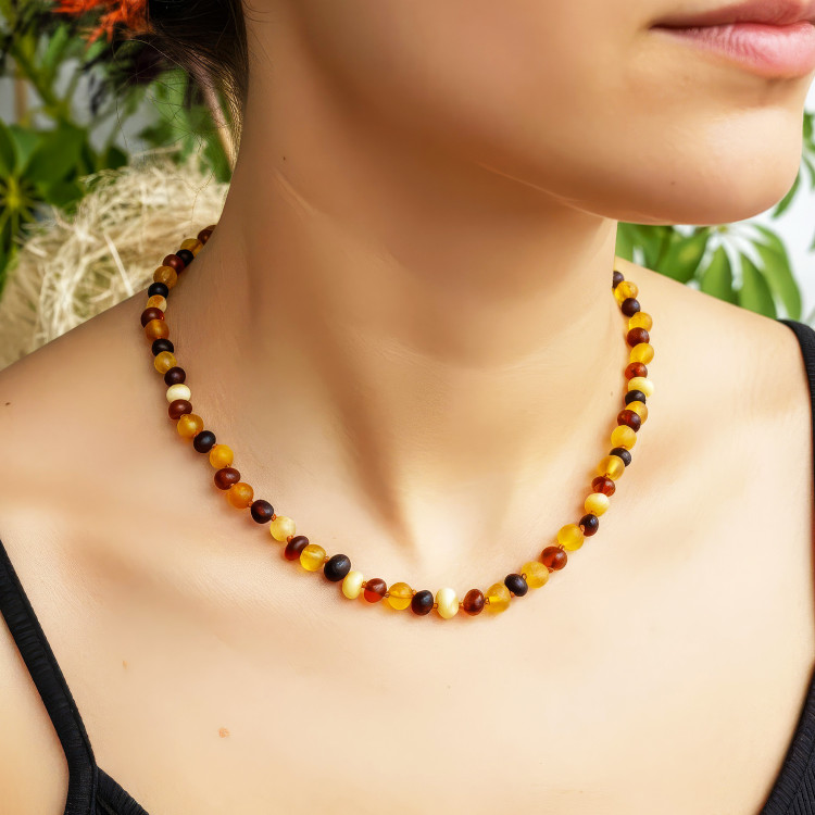 Sertifikalı Baltık Damla Kehribar Kolye (Mat Cilasız, Siyah Beyaz Konyak Sarı, Unisex Yetişkin Takı)